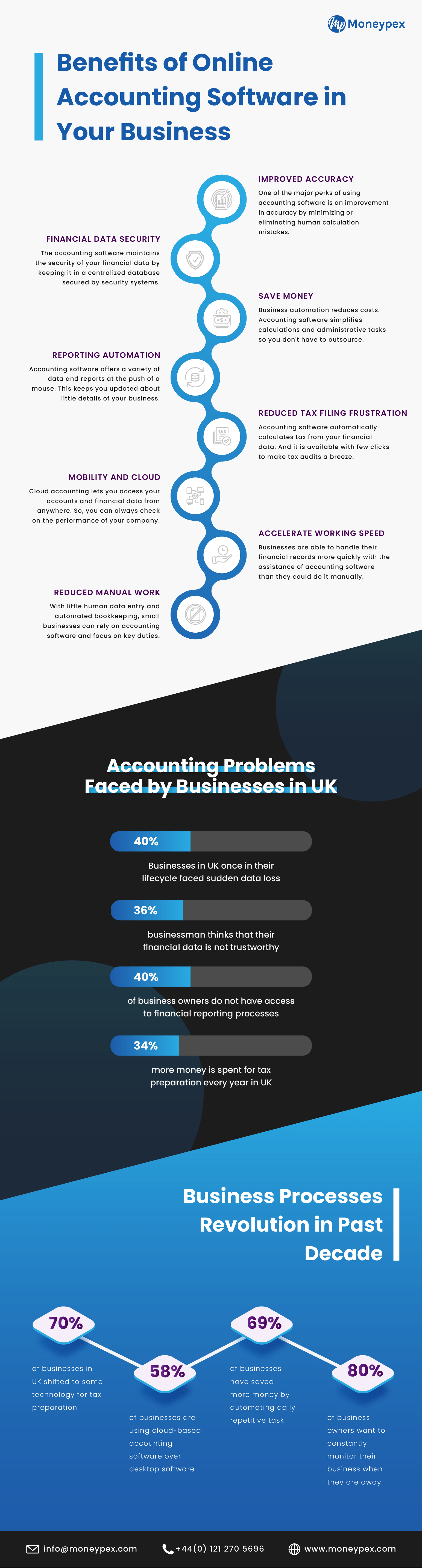 Think about the processes of your company in old times. There used to be paper and piles of files everywhere. Accounting and finance staff would put forth a lot of effort to finish processing everything. Management accounts would be ready 30 days after the end of each month, or they might not be ready at all. The first reliable profit figures for many companies wouldn't be ready for several months after their accountant was given a backup file from their accounting software to work his or her magic on. Some of the major challenges and problems reported during past decade in UK were:
